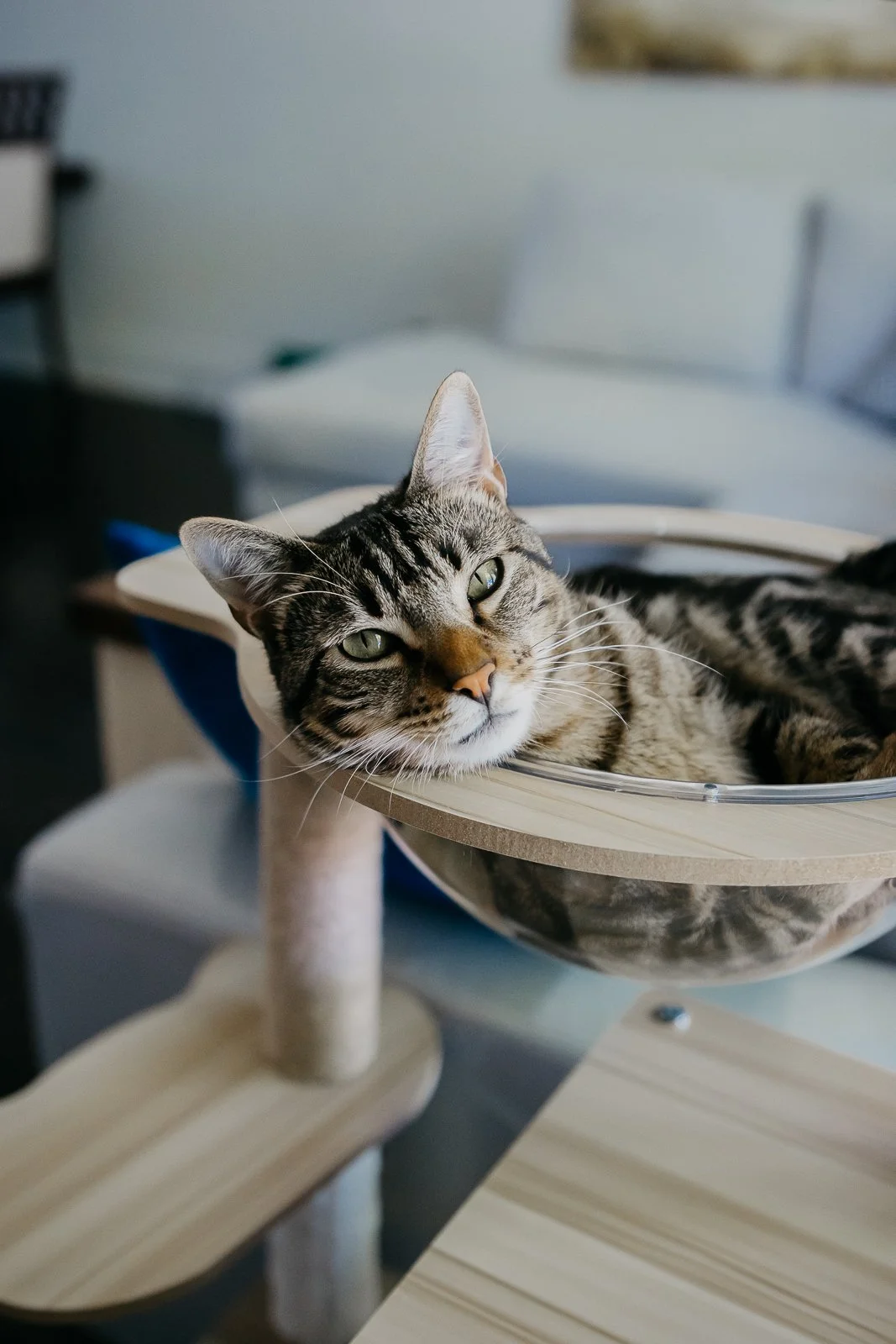 “Nubbin came into our lives this January from a local rescue. He was found as a stray in Texas and was at a risk of being put to sleep. The local cat rescue was able to bring multiple cats, including Nubbin, to Ontario and that's where we fell in love with him. He has next to no tail (just has a little 'nub' on his bottom, hence his name Nubbin) and the rescue centre believes he was born this way.
